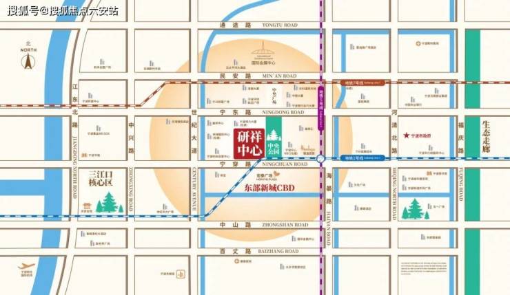 研祥中心坐拥地铁1/5号线双轨交(海晏北路站),无缝连接宁波高铁站(7公里)与机场(15公里)。周边阪急百货、宏泰广场等高端商业举步可达,午间漫步中央公园,下班后享受城市繁华,商务与生活在此完美平衡。
