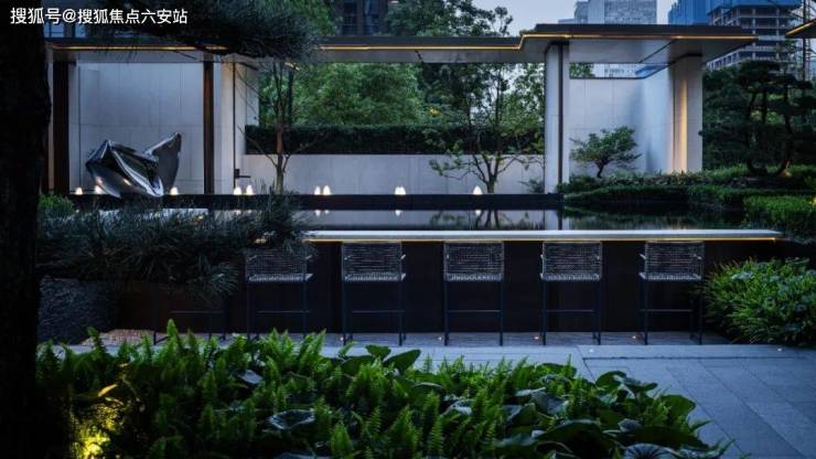 午后,闲庭信步于围合式园林中,潺潺的流水衬得园林愈发静谧。松风、曲径、回廊,不仅点缀着惬意悠闲的步伐,更让居者体会到摩登都市之中,将静谧渗透日常的怡然。