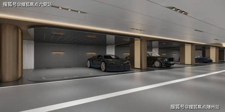 归家礼序:40米挑檐环岛落客区、星空顶车行通廊、可停劳斯莱斯幻影的超宽车位,复刻全球豪车展厅标准。