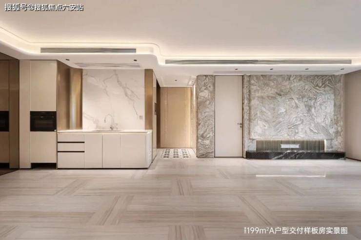 再比如,从公区到室内,10多种甄选奢石镶嵌在不同位置,单元大堂地面的大理石拼花以及整块上墙的稀有雪山兰奢石;卫生间洗脸盆台面用的是皇家白玉石材;户内玄关墙面面和电视机背景墙选择的是安第斯雪景奢石,足以证明开发商的用心。