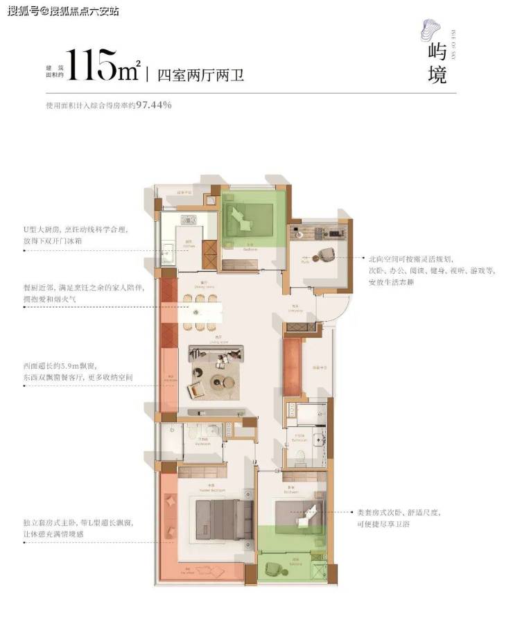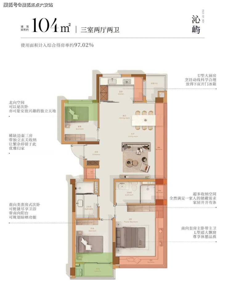 大量赠送面积的拓展,使其拥有约97.44%的超高得房率,堪比市场面主流约150㎡+户型的实用空间。