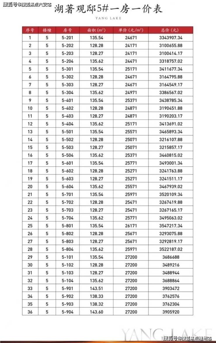 【一房一价表】