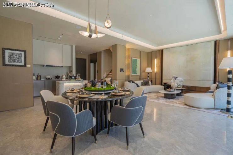 如玺华院在产品设计上别具匠心,将东方宋韵与现代艺术相融合。建筑结构上,接待厅的斗拱同源六和塔宋式斗拱,入户门厅采用引园入院的手法,门前水流透过景墙、两侧相迎的黑松以及铜元素入户大门的设计,让归家之路更具尊贵仪式感。同时,还栽植造型松、朴树等众多名贵树种,复刻南宋园林之美,处处彰显着古典与现代的完美交融