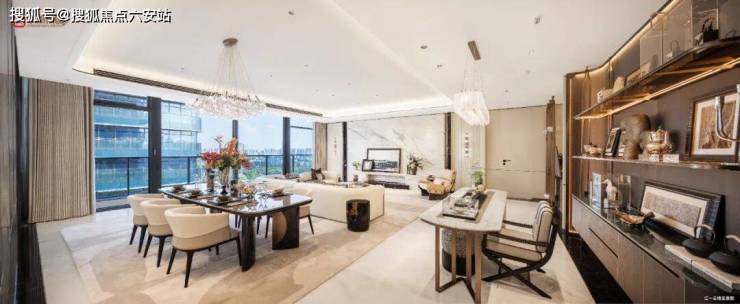 江一云境的样板间,以“秩序生长自由”为空间哲学。约90平米的阔绰厅堂,选用意大利鱼肚金与华尔道夫同款雀眼木,勾勒出不随时光褪色的“老钱风”底蕴。
