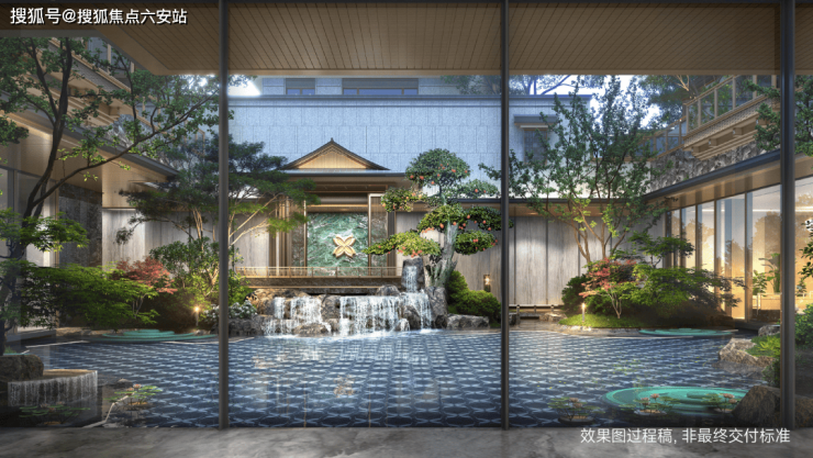 设置全域风雨连廊,园林景观独具匠心,将西湖十景融入园区,53米宽、10.85米高的中式大门搭配罗汉松与黄铜狮,尽显归家礼仪;中庭复刻“柳浪闻莺”“花港观鱼”,如西湖画卷;下沉庭院有百年古树,步移景异如“人在画中游”。