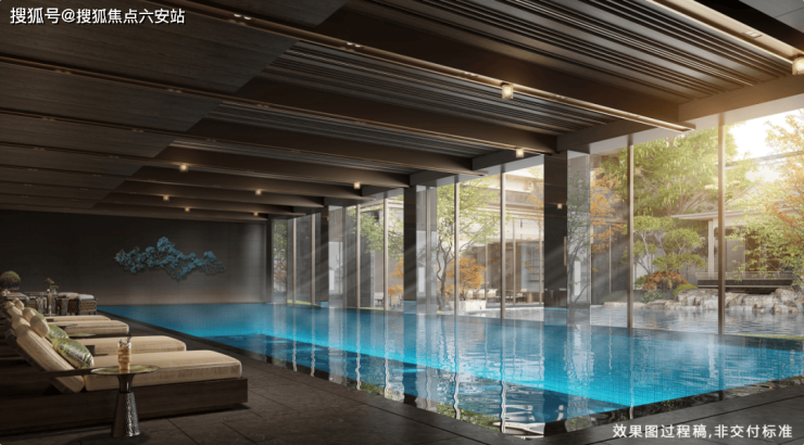 建筑面积约1800平方米的下沉式会所(含下沉庭院),户均会所空间达到约10.9m,内设恒温泳池、私宴厅等功能空间,所有区域环绕下沉庭院布局,风景还是非常不错,例如高定私宴厅,对望下沉式庭院景观,享受美酒佳看之余,还能欣赏如诗如画风景。还有500㎡架空层泛会所配备健身房、咖啡吧、书吧及童玩区,功能齐全。