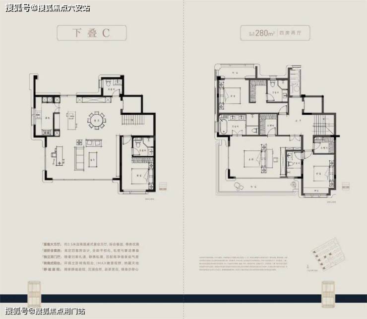 户型方面,主力建面约210-280㎡四层叠墅,采用全套房设计,朝南大开间阳光满堂,主卧“小家化”,步入式衣帽间和独立卫浴间兼备,更大尺度的面积,更开阔的家庭社交区,更舒适的套房空间。