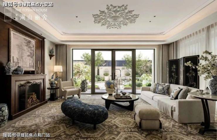 集萃东西 当代海派新境 湖山丽舍用、暖色石材与铝板复刻出它们的秩序感。石面雕琢出弧线、倒角和线槽,加入大量玻璃栏板、落地窗和阵列式长窗,增加整个建筑的灵动感和通透度,更贴合现代审美和生活。•十字中轴对称 •三段式古典构图 •类孟莎式屋顶 •景泰蓝奢石