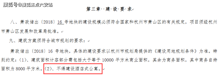 该函发布之后,除了个别规划条件明确允许建设酒店式公寓等类住宅的地块,杭州十区范围内出让的商业商务地块,规划条件中均明确写明“不得建设公寓式办公、酒店式办公等带居住功能用房,最小产权分割单元不小于300㎡”。