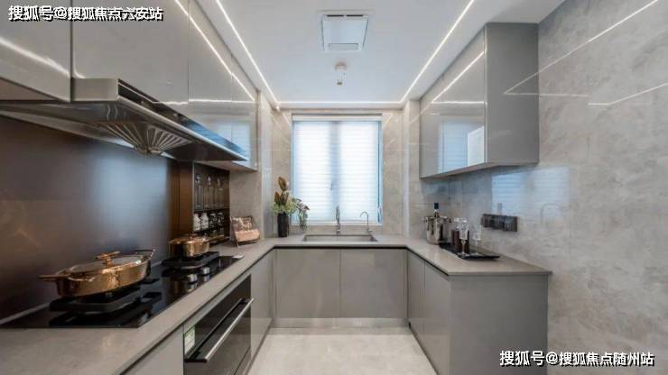动线合理的厨房空间,贴心预留冰箱位置,容得下两人并肩的浪漫,容得下三餐烟火的情长。