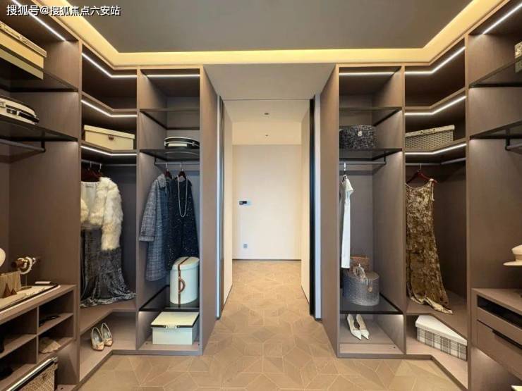 极其阔绰的公共收纳空间之外,男女主人都有独立衣帽间,除此之外,还有40平米的家庭共用衣帽间。
