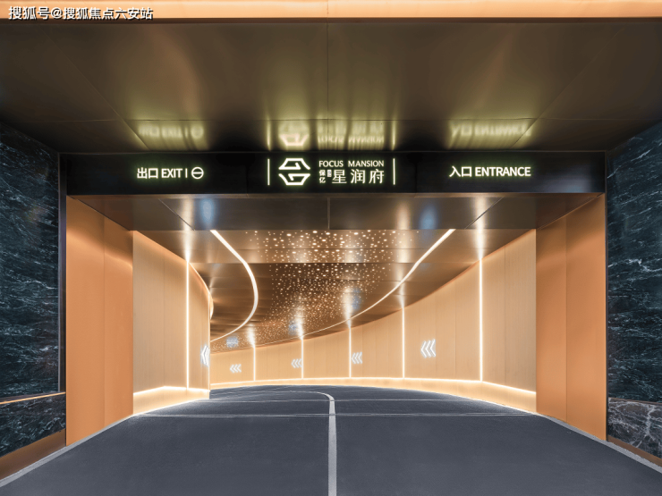 金色铝板挑檐、四面全干挂铝板+三玻两腔玻璃幕墙,搭配仿金丝楠木线条,打造现代与古典交融的“宋风立面”;主入口采用“普拉达绿”奢石与百年罗汉松造景,彰显归家仪式感。