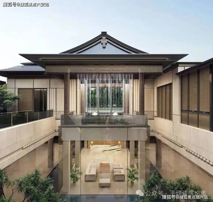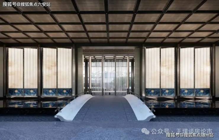 外立面革新:LOW-E玻璃+葡萄牙米黄真石漆,复刻钱王西园“五进礼序”,秘色瓷青碧、天目盏星斑等吴越元素融入会所设计