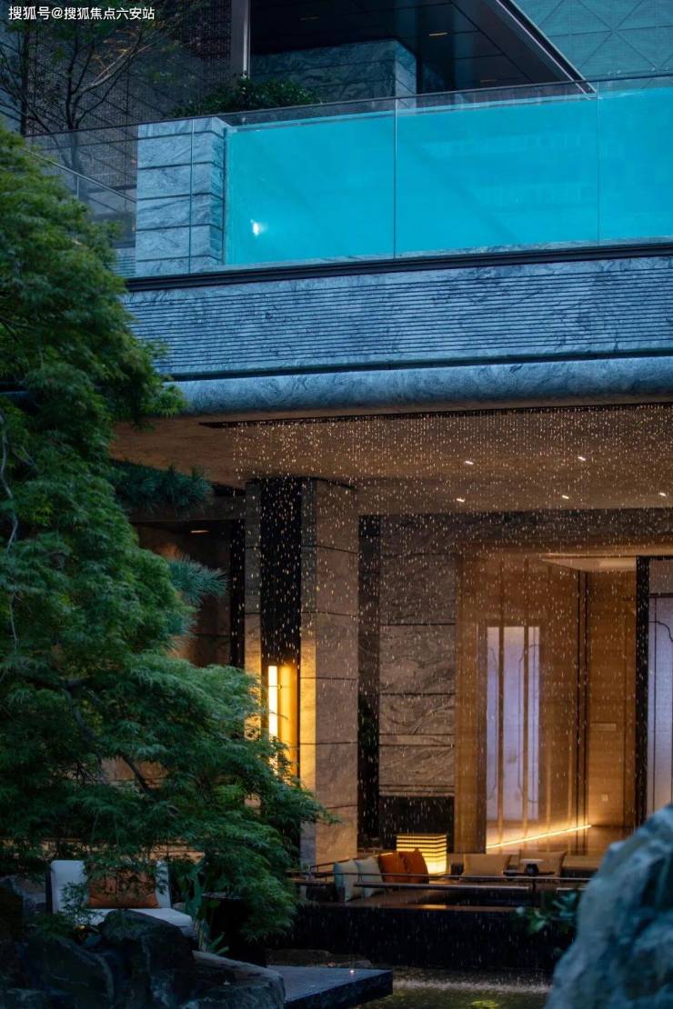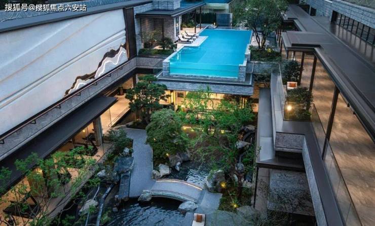 社区入口以“华盖门庭”致敬东方礼序,鼎筑高约9.5米九五登峰门庭,两侧“翠谷幽兰”奢石搭配六棵百年黑松与油松,缔造尊崇归家第一印象。约150米中央水轴贯穿东西,融入“四水归堂”意境,串联十八学士下沉庭院、银河九天瀑布泳池,复刻《溪山清远图》诗意场景,让每一步都浸染水墨丹青。