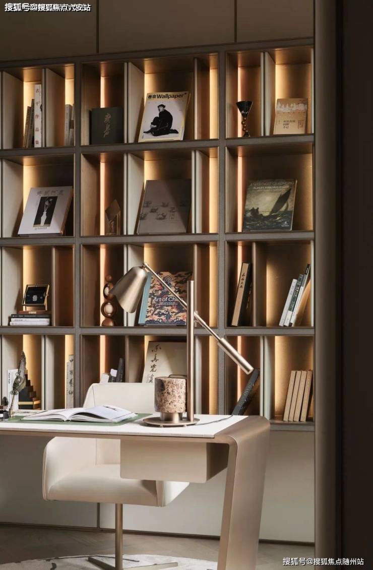 睡眠区与书房联通,书房不仅仅是一处工作空间,也是陶冶情操的艺术空间,光影落入室内,自然与灵动交织的空间里,让思绪得到更充分的延展。