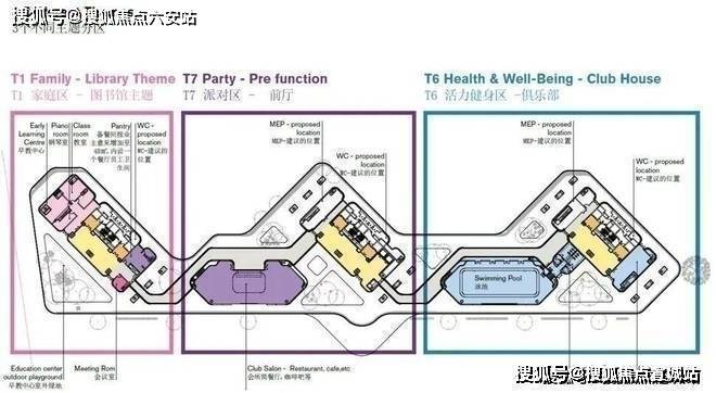 三幢公馆分别配备了不同主题配套设施,三楼顶层设有 800㎡ 环绕阳光跑道。