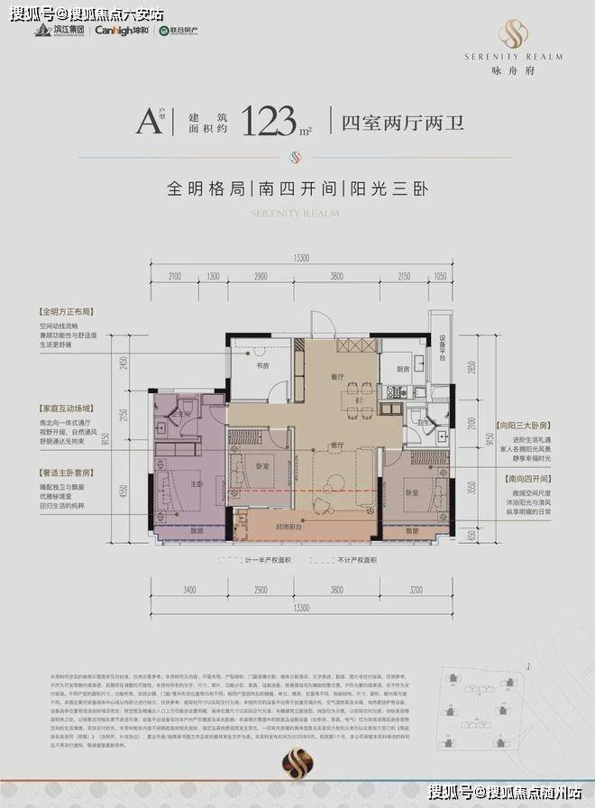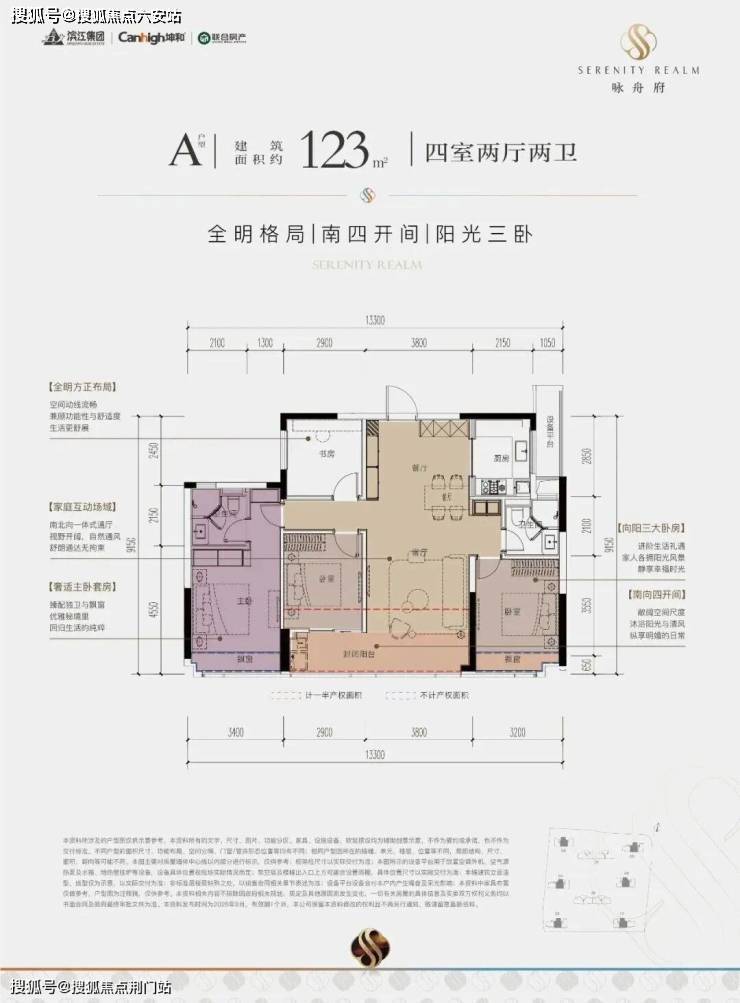 约13.3米的南向采光面,四开间朝南、三卧朝南,让生活沐浴在阳光里,在同面积段产品中实属难得;LDKB布局,卧室自带飘窗,主卧臻配独立卫浴,可以说是初改置业的福音;北向还拥享一方书房空间,可改造成茶室、电竞房等,轻松实现“悦己人生”。