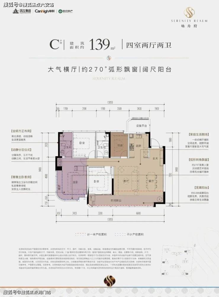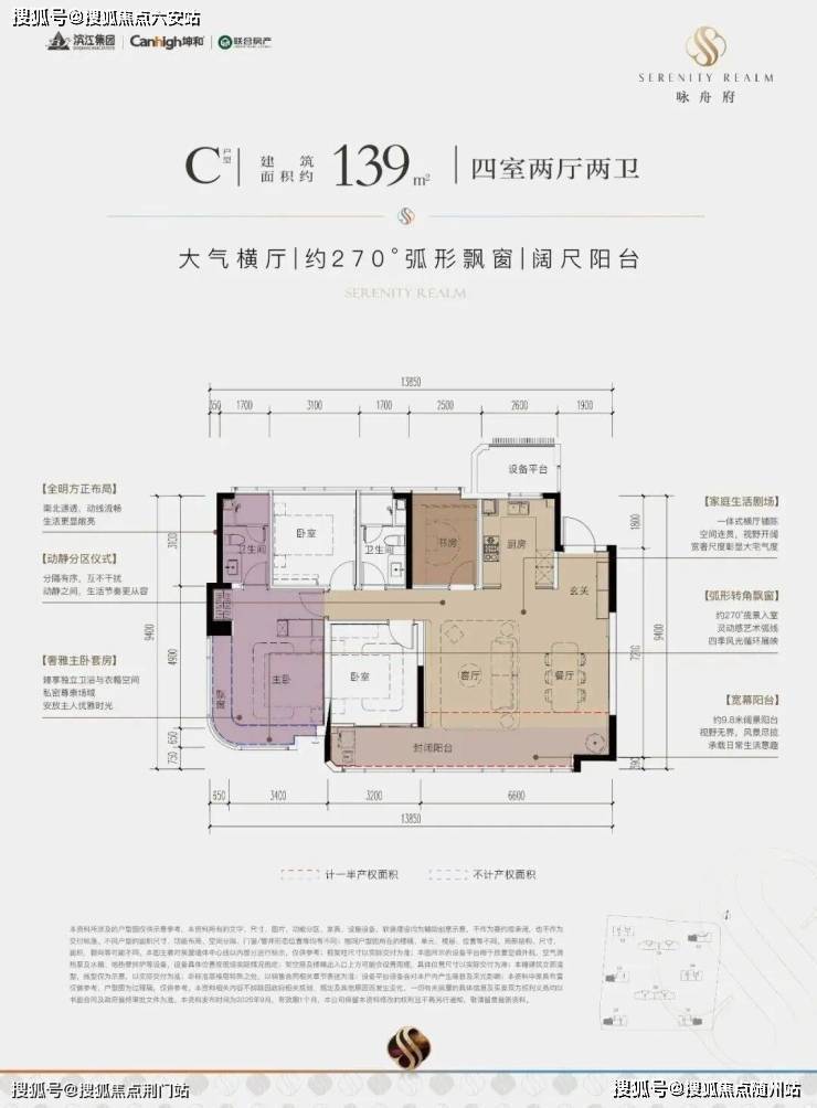 首先,户型上就有诸多突破。如建筑面积约139㎡户型采用约6.8米全景横厅,采光极佳;约21㎡主卧带步入式衣帽间,搭配270°转角飘窗,更奢华明亮;双洄游动线体系既保证隐私又创造多元互动场景。