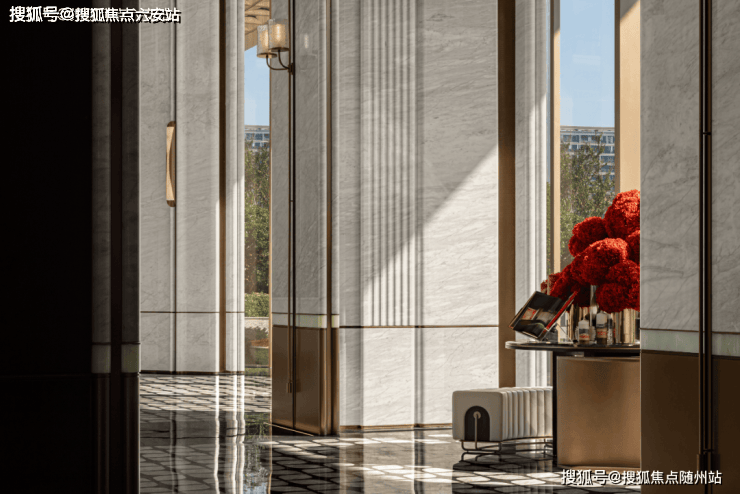 从主入口进入,约85米超宽尺度,约9.5米高鎏金大门贵气十足。步入其中后整个社区的景观如同立体山水画,徐徐展开。