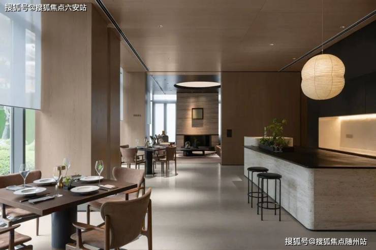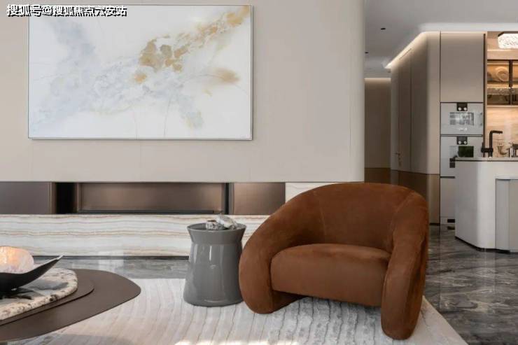 其中建面约322㎡郑仕樑作品,溯源运河文化脉络,提取石拱、檐脊、银杏等在地元素,以「一轴两翼」空间布局串联生活场景。奢阔横厅衔接花园诗意,「方圆有度」玄关融合大漆工艺与艺术装置,营造电影叙事般的沉浸感。