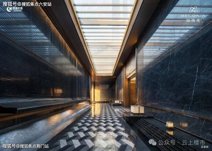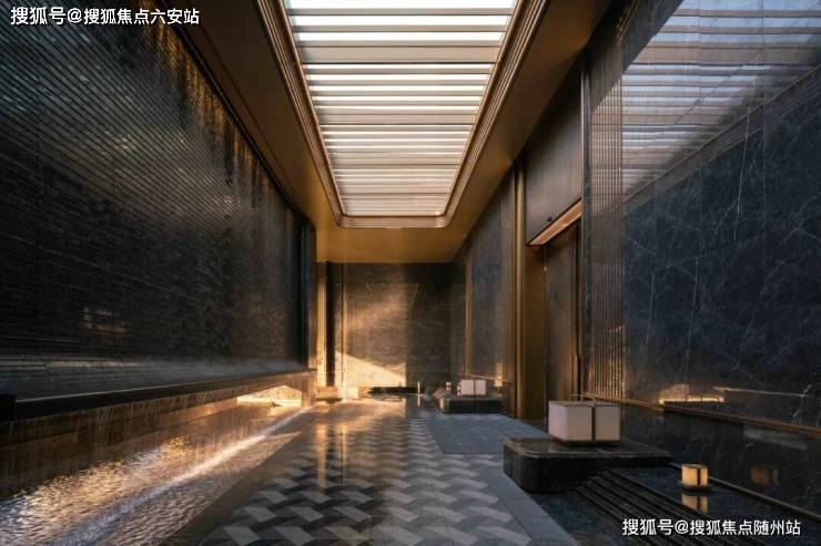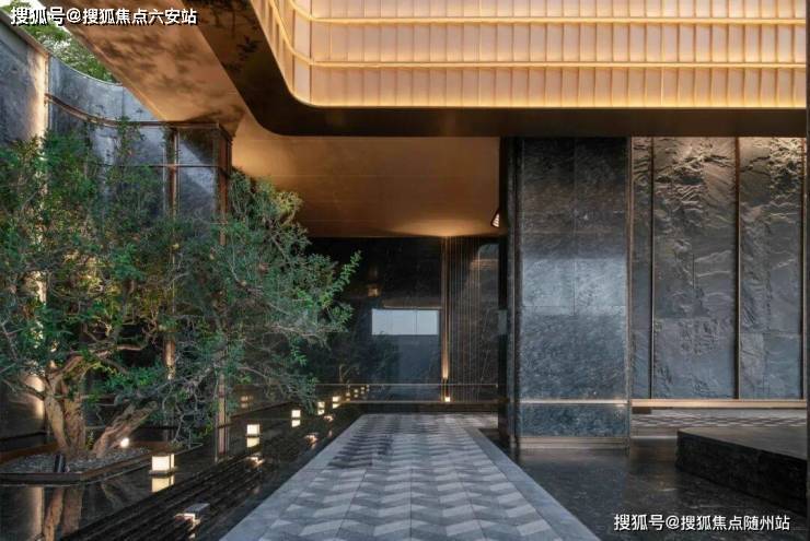 主入口空间向内退让,形成有温度的城市边界。52m超长门头水平横向舒展,既遵循中轴对称的传统礼仪范式,又以简约线条、奢华材质与极致工艺呈现艺术、轻盈的雅奢格调。前场庭院以“洄游”为理念,重构“四水归堂”的空间序列。