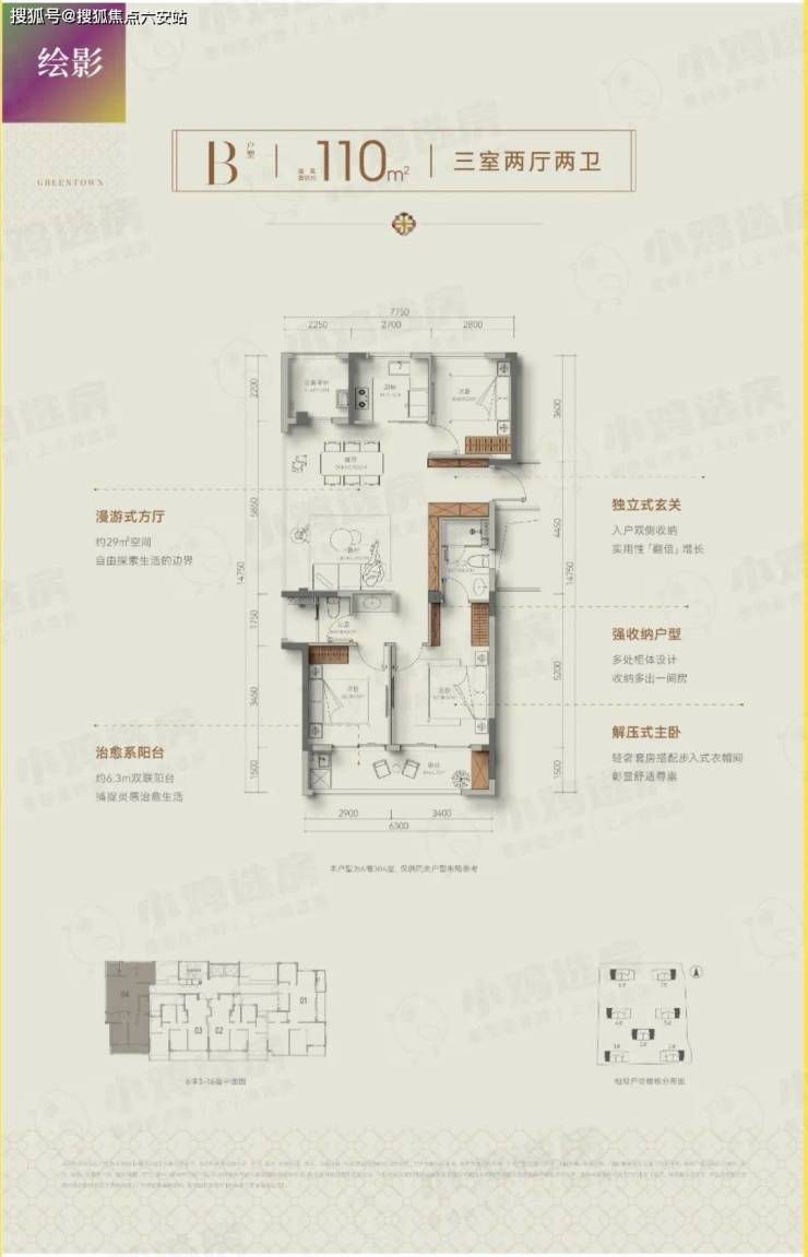 光是餐客功能的横厅就有约27方的面积。两房南,还带了跑道式阳台,约6.3米的开间,可以实现多种功能。
