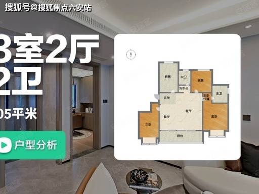 125㎡|3 房 2 厅 2 卫:阔绰三房,南北通透,双阳台设计