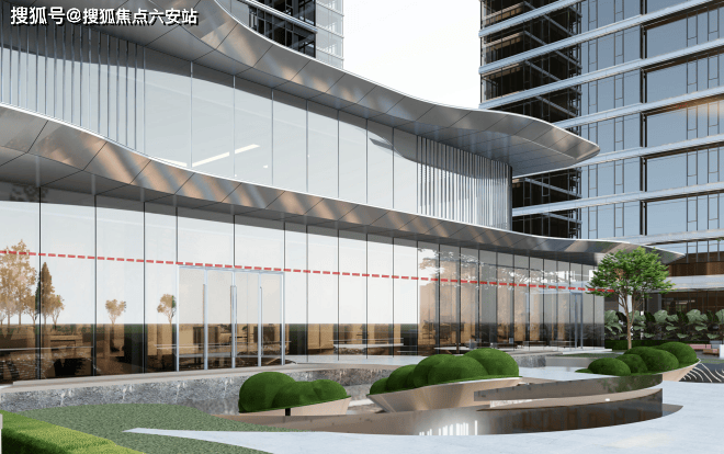 整个园区以围合式布局展开,七幢建筑借鉴中国古典园林的精髓,最大楼间距达到了63米,使得每栋楼都能享受到270°的开阔视野,仿佛是一座座隐匿于花园中的岛屿。为了与景观相呼应,园区立面采用“水晶天幕”设计,线条纤细,使建筑宛如天空中垂下的纯净湖面。