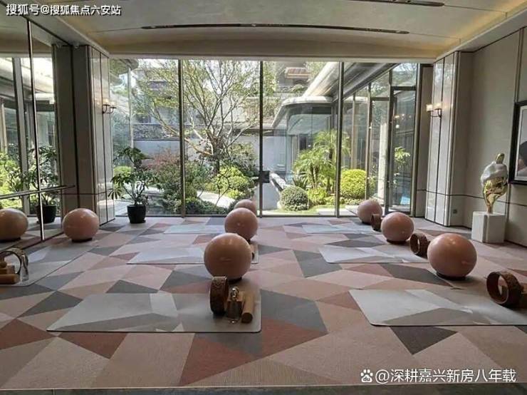 园区内配有下沉式庭院和会所,会所内设置了多个功能空间,除了健身房、瑜伽室、恒温泳池这些空间外,咏舟府还做了一个网球室,对运动爱好者十分友好。