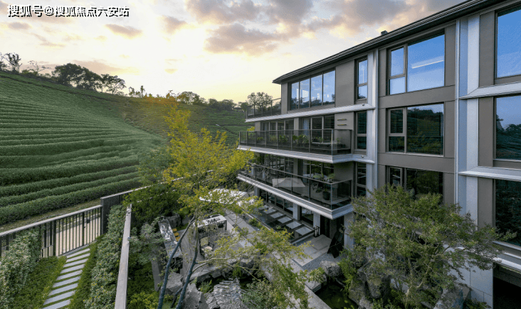 茶韵院景,一步一景:社区园林以“茶”为魂,复刻龙坞茶村传统肌理——青石板路串联起“采茶径”“炒茶堂”“品茶轩”,景观小品融入茶篓、茶盏、茶经碑刻;每栋叠墅的庭院均配“茶田微景观”(业主可认养种植),春天采明前茶、秋天收秋茶,连邻居串门都能聊“今年哪块茶田长得好”。