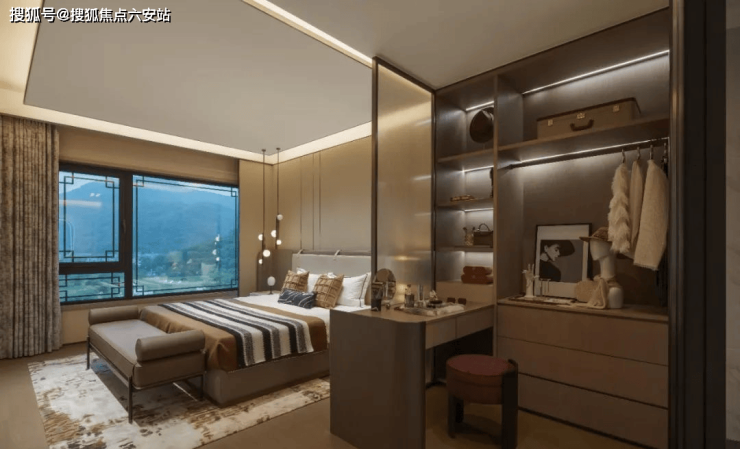 卧室则是心灵的庇护所,新东方风格的卧室以其宁静舒适的氛围,让您在疲惫的一天后得到充分的放松。柔软的床品搭配精致的床幔,给人一种如梦如幻的感觉。床头的一盏古色古香的台灯,散发着柔和的光线,为您营造出一个温馨的阅读角落。半开放式的浴缸和卧室融为一体,大大增加了生活的舒适感。