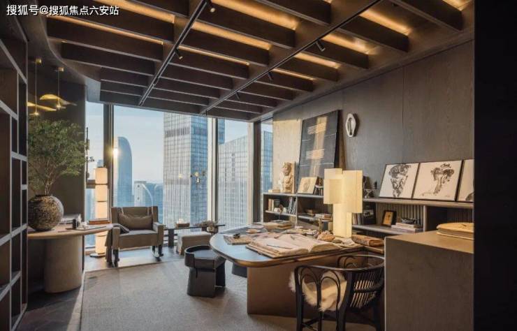 客餐厅作为核心中轴,形成一个多重功能的复合场域。落地窗将钱塘江的天际线引入室内,呈现出开合自如的呼吸感。