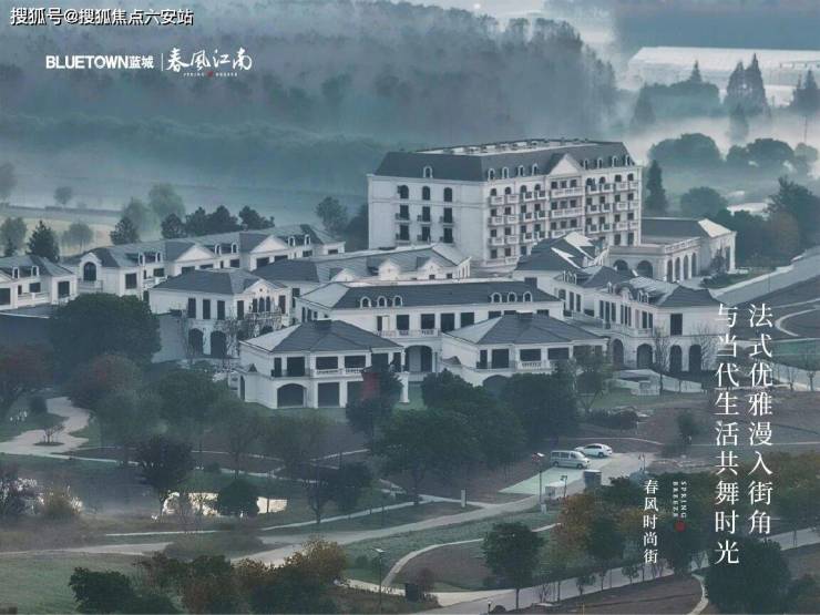 一庭一径,疏影横斜;一窗一阁,烟波凝驻。转身步入小镇中心—春风时尚街,法式建筑错落,借景透景,让晨雾、光影都显现出独有的浪漫色彩。