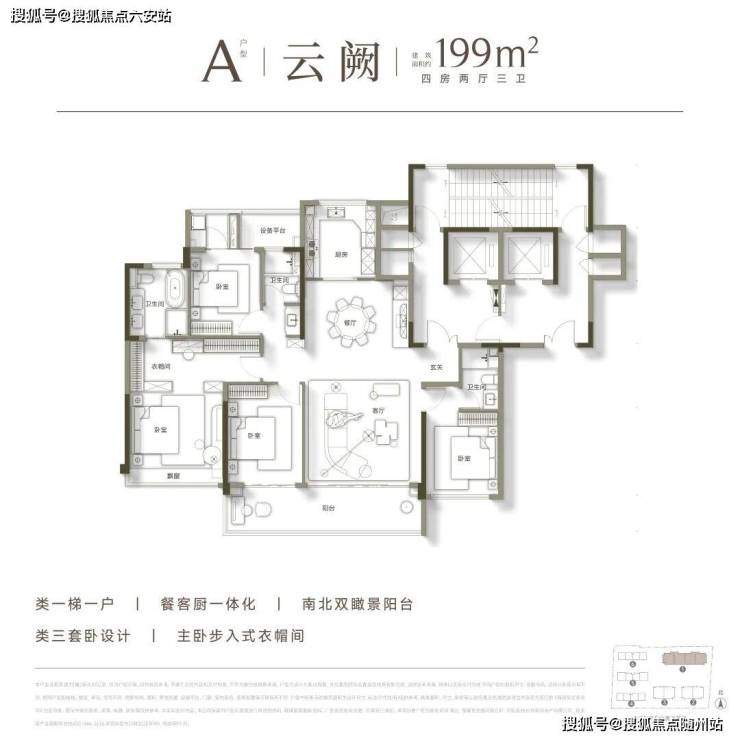 受欢迎的南厅户型199㎡A的户型比较经典。