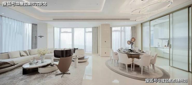 室内设计上,采用LDK一体化设计,带来极具阔正的空间尺度,并以大面米灰、暖灰为主基调,营造出高级优雅的氛围感,同时通过吊灯、艺术玻璃、酒柜等软装艺术作点缀,将艺术与生活融合,简奢中透出时尚前卫,营造出私密、温暖、现代化、国际化及独特的鼎级舒居体验。