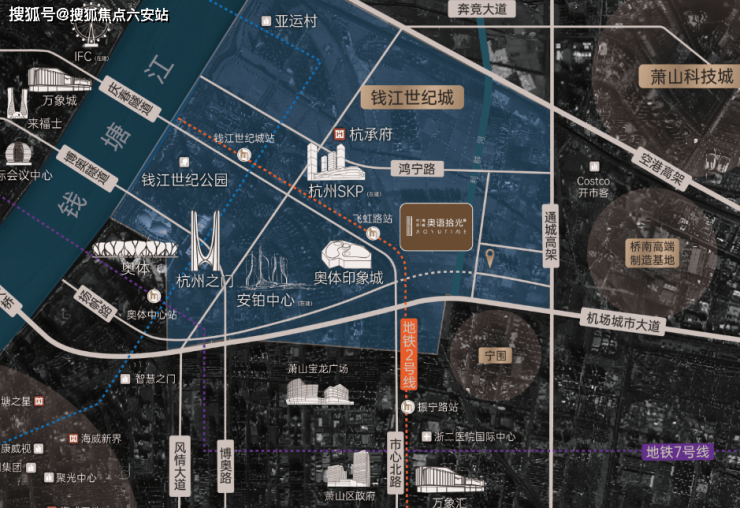 【中天海威·奥语拾光】位于钱江世纪城,未来总部基地启动区。未来将与奥体印象城、SKP、潮启世纪中心(约150米地标综合体)形成商业聚合效应,成为三公里内社区消费配套之一,集餐饮,休闲,娱乐为一体,形成强大的核心消费圈。