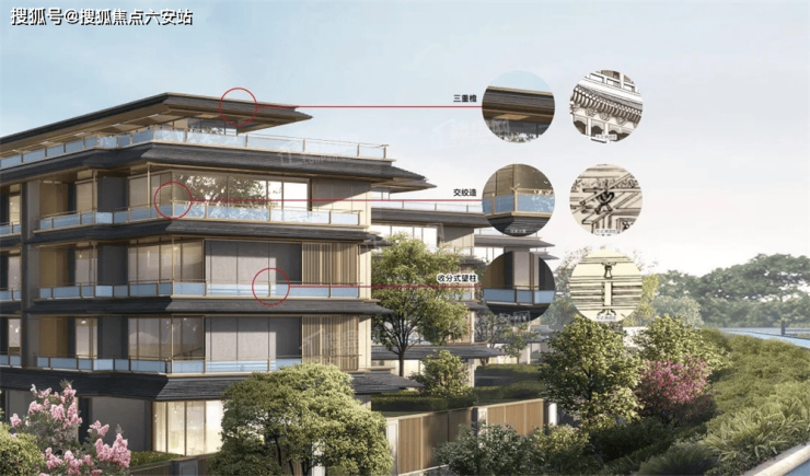 其二,宋风美学,颜值与实力并存。项目师法宋代建筑美学,将传统东方意境与现代人居需求完美融合,三重檐、纤细柱式等宋式元素的运用,赋予建筑独特的美学气质;五大现代型材打造的立面,不仅美观大气,更兼具耐用性与实用性,历经岁月沉淀依然焕发光彩。社区内部的宋式园林,步移景异,四季有景,让业主在日常生活中就能感受东方美学的魅力,实现“居有境,心无界”的居住体验。