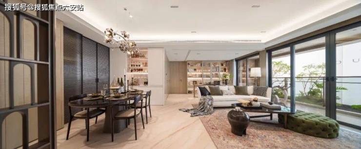 玄关处大量哑光影木面板的设置,质感满满。艺术屏风和厨房隔断门的横向线条,与主次卧室内的格栅相呼应,成了室内标志性的元素,颇具艺术感。白金沙岩板地面、冰岛翡翠岩板背景墙,主卧拼花地板,每一样都具有独特的审美价值,甚至连门把手都采用了非遗编织工艺,让房子在兼顾实用性的同时,具有了别人没有的艺术价值。