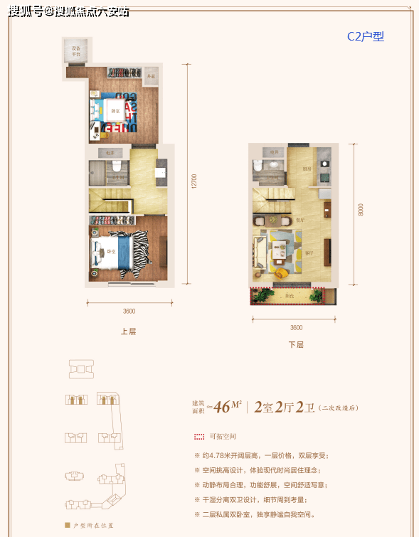 4.78米开阔层高,买一层享两层。客厅、餐厅、书房、卧室、厨房、卫生间…即使是四口之家,也可以居住的舒舒服服的。