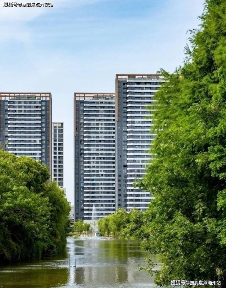 实景可见:外立面采用高级灰流线型设计,搭配镜面水池与艺术水景,社区绿化率达40%;