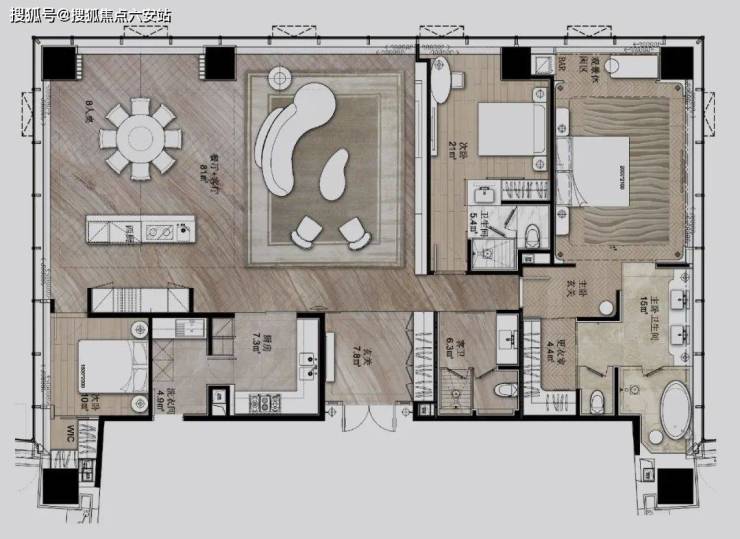 双套房,丈量大人物生活排场,私密空间,匹配超大衣帽间与独立卫浴,豪奢主卧媲美华尔道夫总统套房。