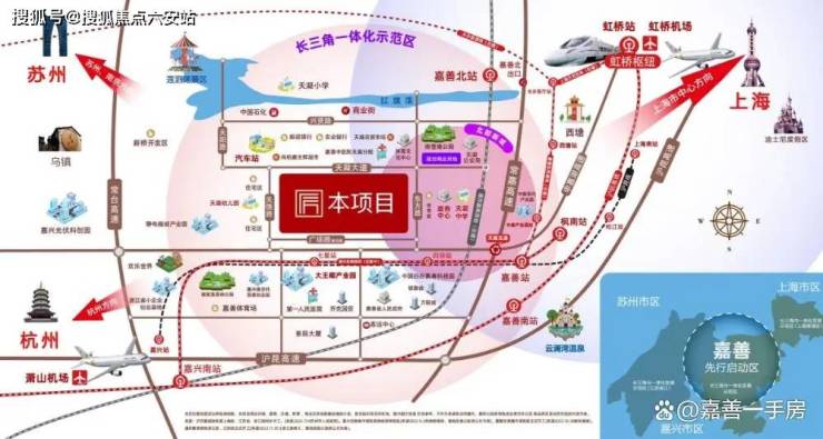 轨道交通:项目距离沪昆高铁嘉善南站直线距离约3公里,约20分钟即可抵达上海虹桥枢纽。备受关注的沪苏嘉城际铁路(嘉善至西塘市域铁路)已在建,未来将进一步提升与上海、苏州的通勤效率。