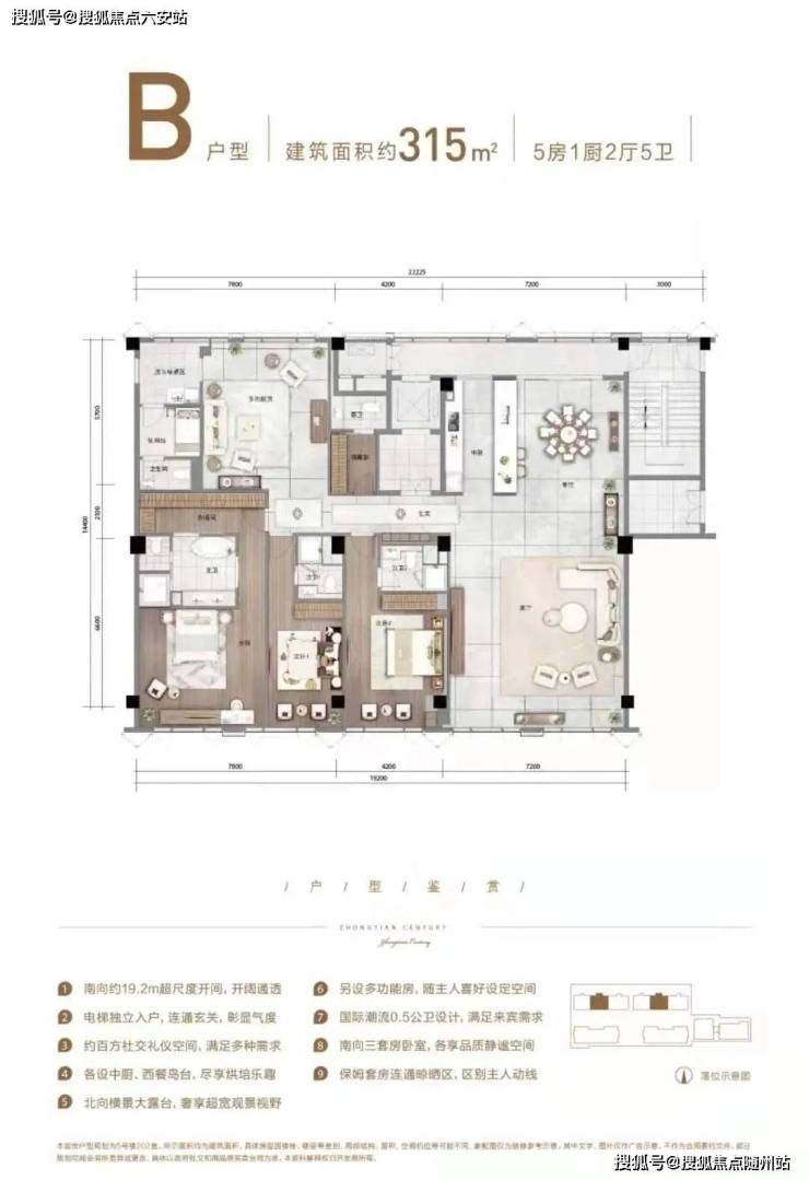 5. 宽敞户型设计亮点:315-340㎡空间自由格局