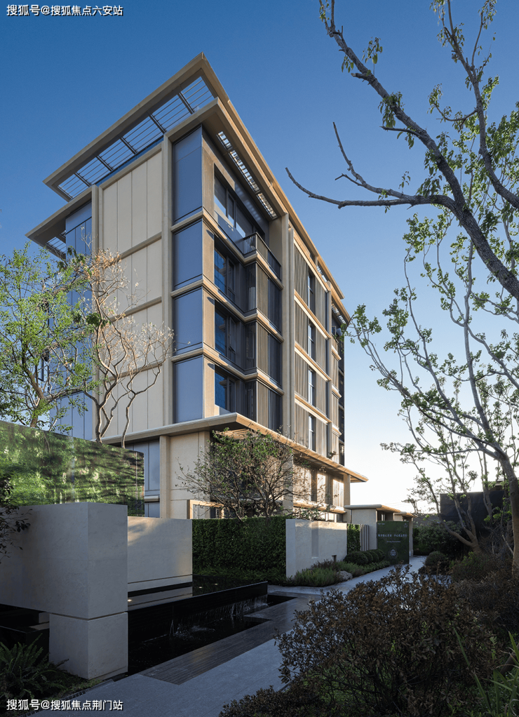 景观设计是项目的一大亮点,以“超级底盘”为概念,整合“浮光墅屿+垂直绿洲+流动山林”三重立体景观体系。通过台地、高差与下沉庭院的处理,打破了单一维度的绿化模式,形成可游、可赏、可憩的多元场景。
