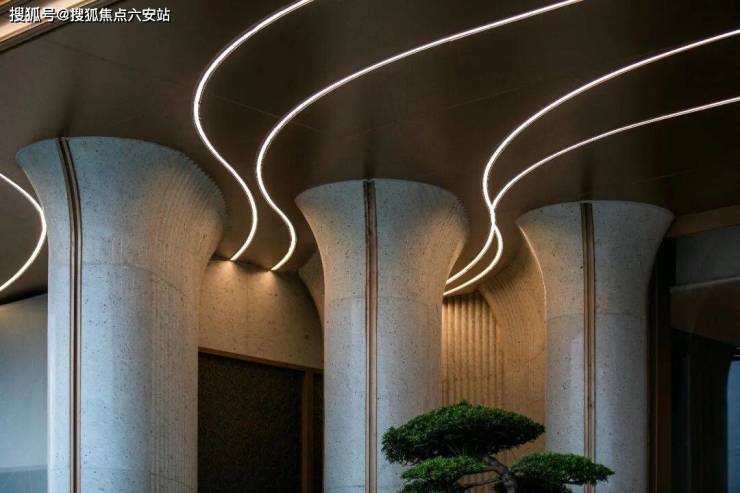 鸣澜里的建筑立面设计颇具匠心,四面铝板、造型格栅与大面玻璃幕墙的精妙设计,辅以深灰基座与鎏金窗框的点缀,构筑出沉稳大气的风格,赋予建筑轻盈漂浮的视觉感受。通过打磨建筑单体的圆角弧度,不仅丰富了层次感,更营造出通透开阔的空间意境,引领未来审美新风尚。