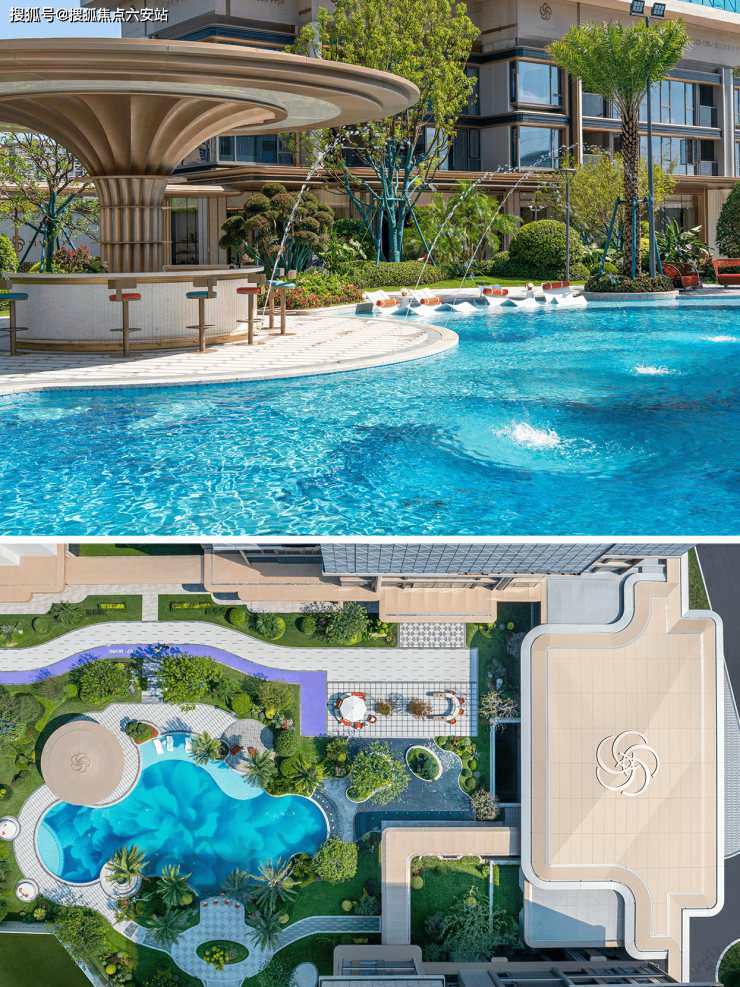 在情绪价值至上的时代,鸣澜里的景观园林也充满了疗愈感。异形的中央水景,悬浮的岛台,充满热带气息的棕榈植物,度假的场景和轻松的氛围十足。对于工作繁忙、生活需要放松的都市年轻人而言,下楼就是旅行、归家就是度假的生活场景,才是家和工作之外最好的第三空间。