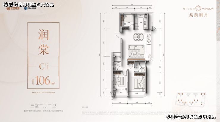 106㎡户型,则是清一色的边套,更具有尺度感。其中LDK一体化餐客厅自带约6米大边厅,开发商还主动封闭阳台,搭配大面积的落地窗,形成近35㎡的超级边厅,比市面上普通139㎡客厅还大!
