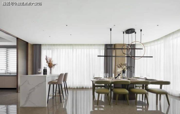 主力347平方米户型设计三间卧室朝南,主卧面宽达5.8米,配备270度弧形转角落地窗,无柱设计最大化引入室外景观。这种对细节的精心考量,体现了设计团队对高端生活需求的深入理解,让每一处空间都物尽其用。