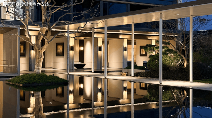 约700㎡镜面水院与约200㎡自然动态水系相映成趣,摩尔花园、罗曼花园等九大景观节点串联归家动线,每一步都是游于画境的美学体验。
