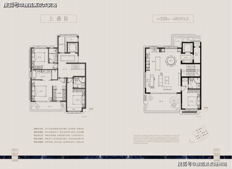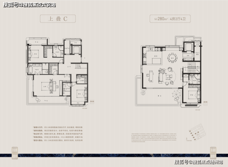 全套房设计互不干扰;下叠庭院上叠露台配置